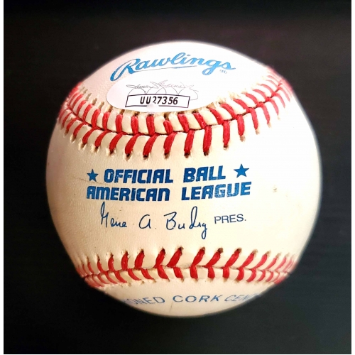 This American League baseball is autographed & inscribed "HOF 89" by Red Sox Hall of Famer and 3,000 Hit Club member Carl Yastrzemski. The baseball has been authenticated by James Spence Authentication (JSA). Certificates of Authenticity from JSA and Authentic Memories Sports & Entertainment Memorabilia will be included.