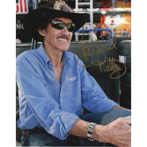 This is an 8 x 10 photo autographed by NAASCAR legend Richard Petty flawlessly in gold paint pen. The photo pictured is the exact one being offered. A Certificate of Authenticity from Authentic Memories Sports & Entertainment Memorabilia will be included.
