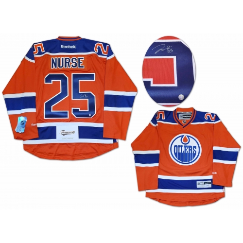 This genuine Reebok size medium Edmonton Oilers jersey is autographed by defenseman Darnell Nurse and comes with a Certificate of Authenticity from Frameworth.
